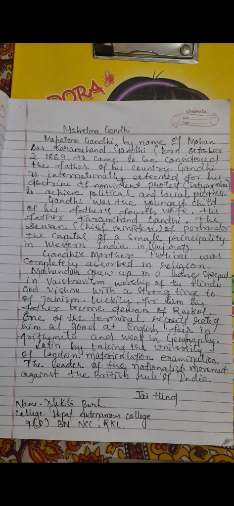 Name-Cadet Sujata Bage Institute-Ispat Autonomous college Unit-9(O)BN NCC Reg.No-OD21SWA660199