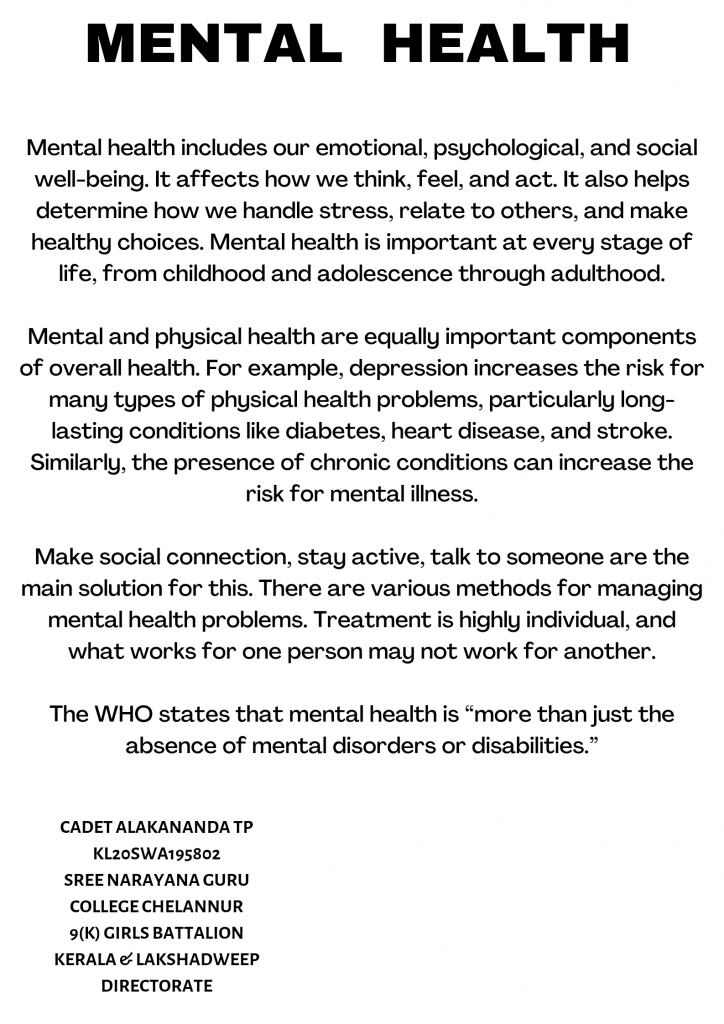 CADET ALAKANANDA TP KL20SWA195802 BSC MATHS SREE NARAYANA GURU COLLEGE CHELANNUR