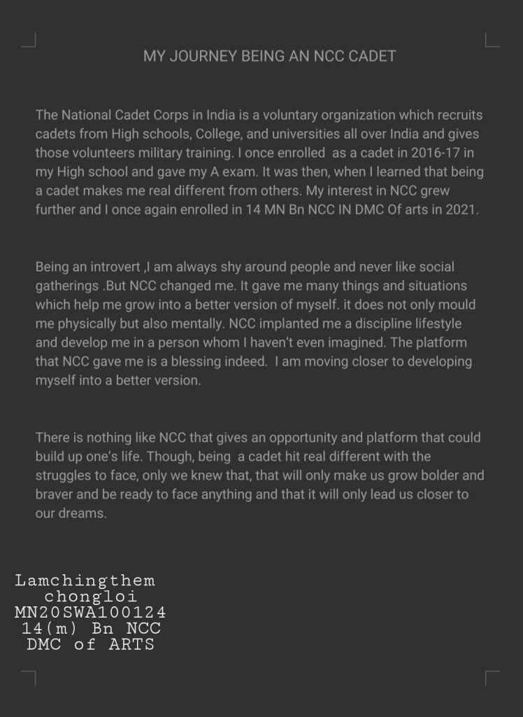 NAME - Sharmistha Das regt No - WB20SWA 124261 RANK- CDT