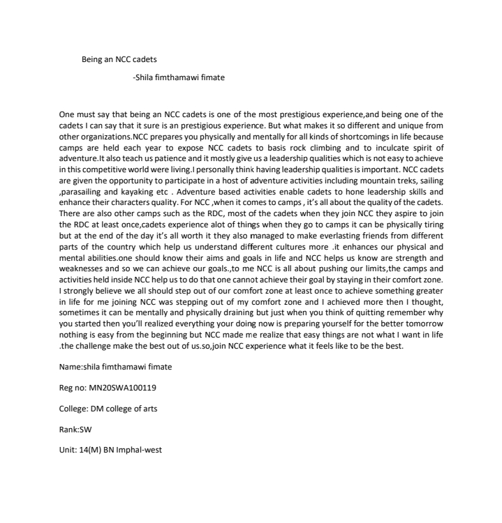 Jai hind. I am cdt. Kanu Priya regimental no. HP20/SWF-309584 from 1HP air sqn ncc kullu. I am very happy that we got to the opportunity to flying. This was our 1st flying. And this was our first experience. This experience was great.
