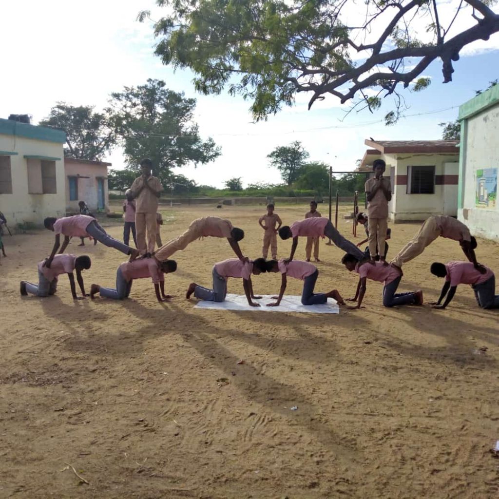 MS polytechnic College Cadets to demo and practice of physical fitness program in school boys.
