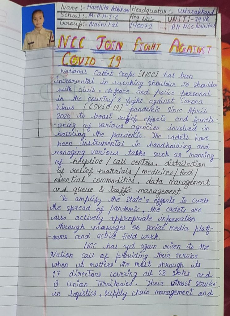 I am cadet Harshita Adhikari 79 UK BN NCC( Nainital )Uttarakhand