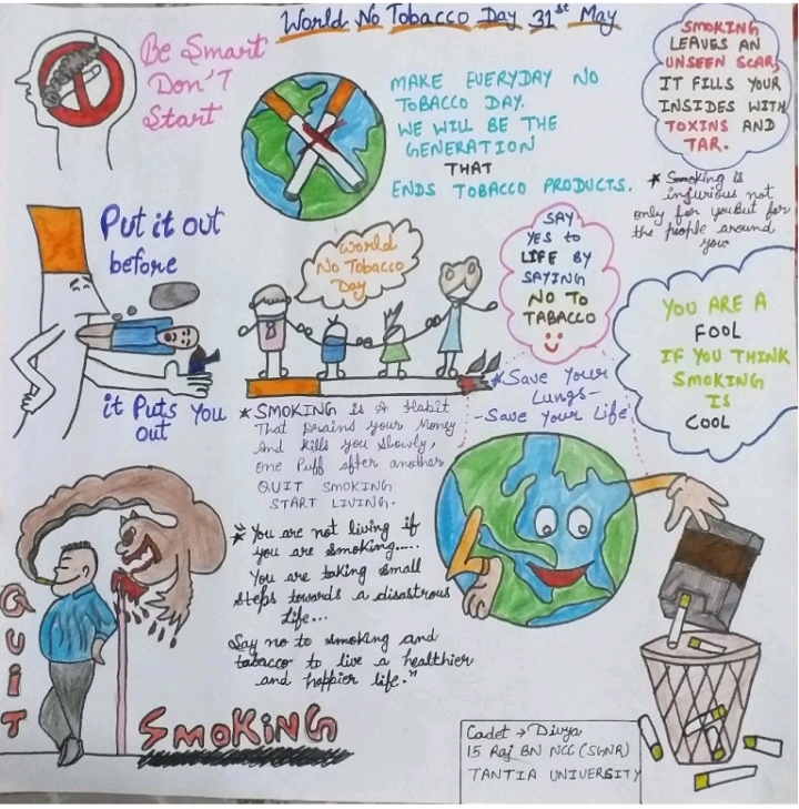 Cadet - Divya 15 Raj BN NCC SGNR ( Tantia university ) Say yes to life by saying no to tobacco Quite smoking