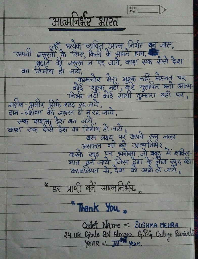 Cadet Name- Sushma Mehra 24Uk Girls BN Almora