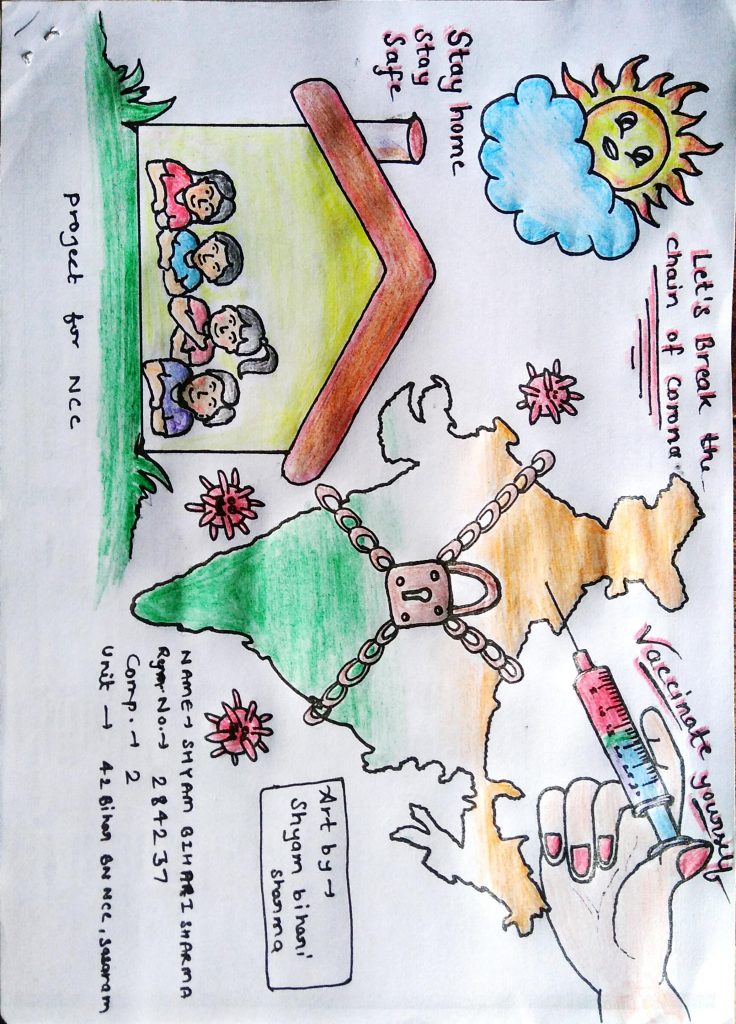 I SHYAM BIHARI SHARMA CADET OF 42 BIHAR BN NCC SASARAM REGIMENTAL NO. 284237 FROM S P JAIN COLLEGE SASARAM. Through this poster I want to aware The people for vaccination because helth is welth. Stay home stay safe it is also my appeal to everyone
