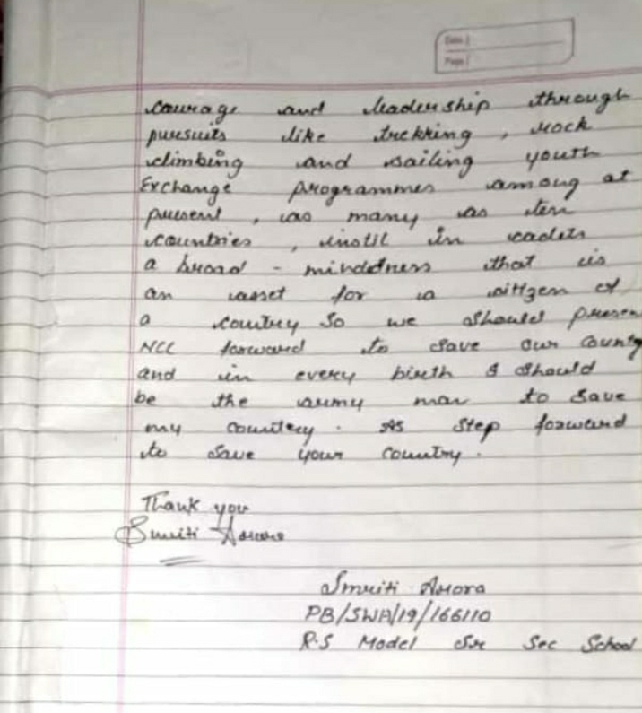 It was a great experience of mine in NCC. I have experienced many good, adventures, things in NCC. Also I achieve many opportunity to show myself and learn a lot from them..