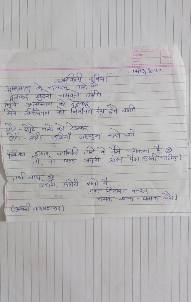 I am avani.& i wrote my poem . Name -chamkili duniya