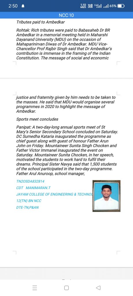 Article on NCC flag day