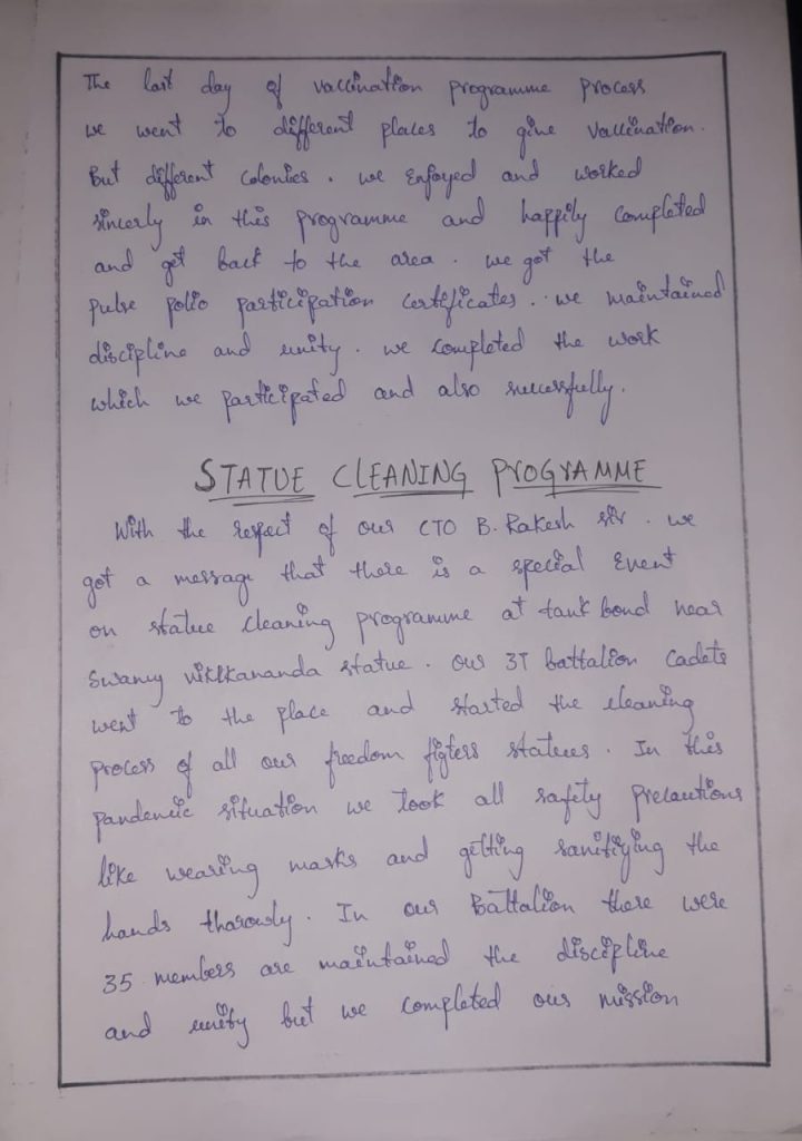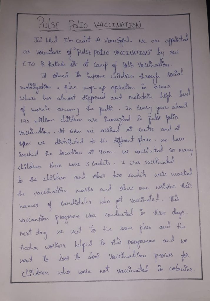 I'm cadet A.venugopal from NCC 3T Battalion Hyderabad group from jagruthi degree college narayanaguda