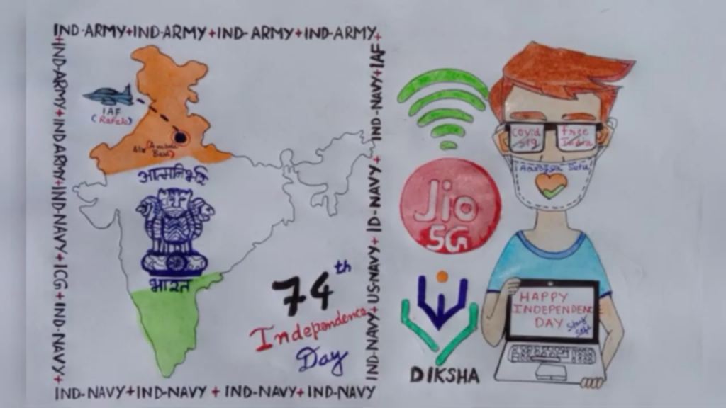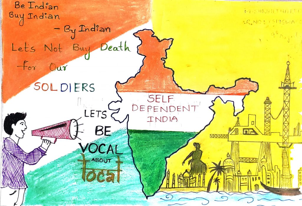 Jai hind everyone Im Cadet M.ShrihithaReddy from (9TBN) Ap& Telangana Directorate. This art depicts India and promoting the local goods,by which we can make India Self Dependent India. JAI HIND