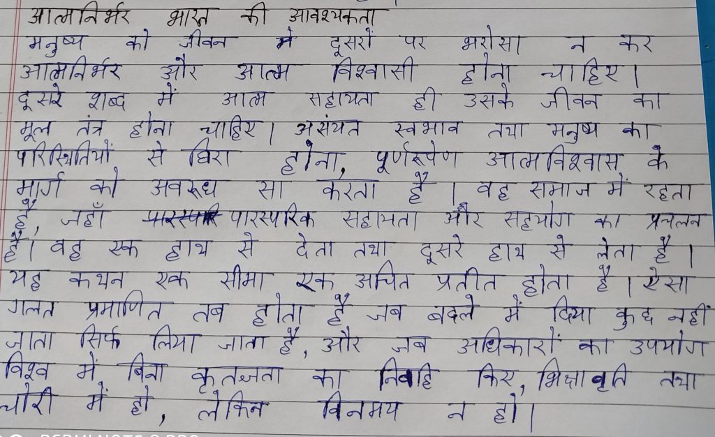 I am Cadet Niraj Kumar of class 10th from SAINIK SCHOOL BALACHADI NCC COY. I had written this article in hindi on Aatma Nirbhar Bharat.