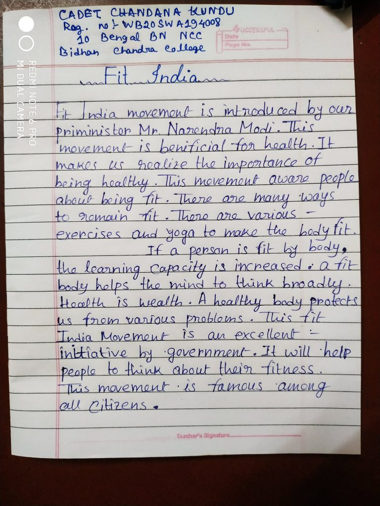 Name- chandana kundu Rank - cadet Regimental no. - WB20SWA194008 Unit - 10 bengal bn ncc Group- burdwan Directed- West Bengal & Sikkim