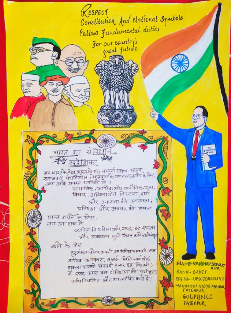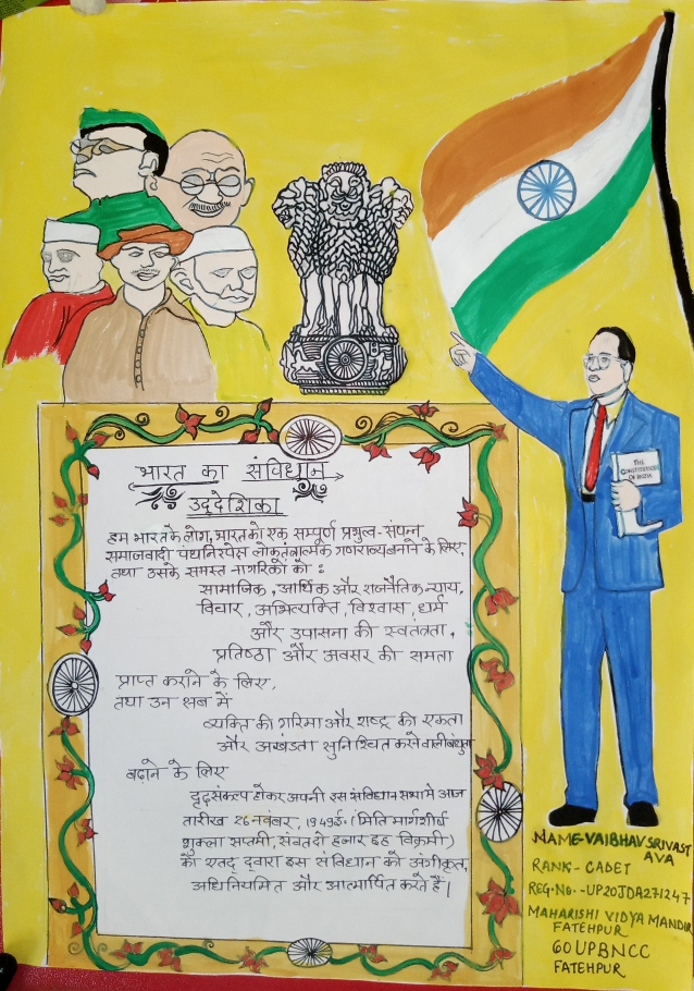My self cadet Vaibhav Srivastava from 60 up BN NCC battalion,FTP This activity is made by me on the occasion of 15th August \"Bharat ke sanvidhan ki prastavana\" Jai Hind and Happy independence day to all✨✨?????