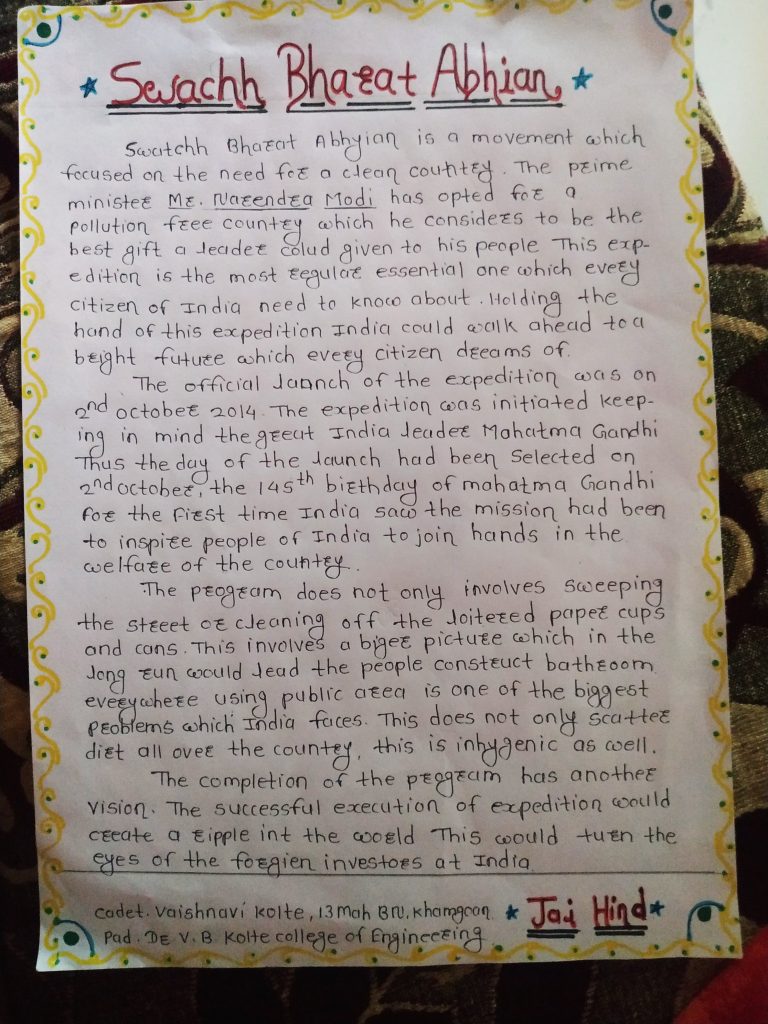 Cadet. Vaishnavi Gajanan kolte 13Mah BN NCC, khamgoan Pad. Dr. V. B. Kolte college of engeenering Malkapur