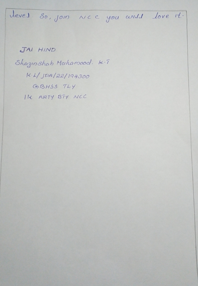 AJAY PRAKASH P KL/21/SDA/185211 RSM SNDP YOGAM COLLEGE KOYILANDI NCC CALICUT GROUP 30(K)BN NCC KERALA&LAKSHADWEEP DTE