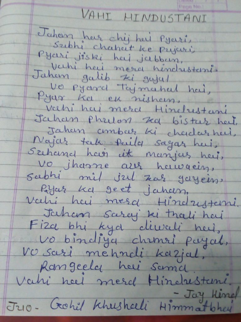 I'm cadet Gohil khushali from 3 guj girls bn ncc Bhavnagar too smt vp kapdiya mahila arts college . written poem by me.