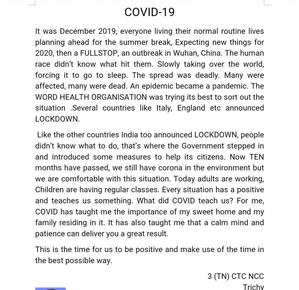 I am Anjali Singh, Cadet of 19 Up girls Bn NCC Lucknow. Presented a short video of developing Aatmanirbhar bharat , in order to boost the growth and development of Industrial and technological aspects in Indian economy.