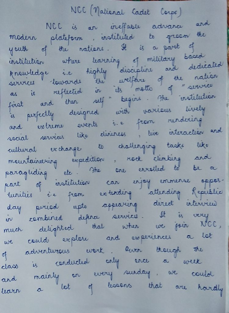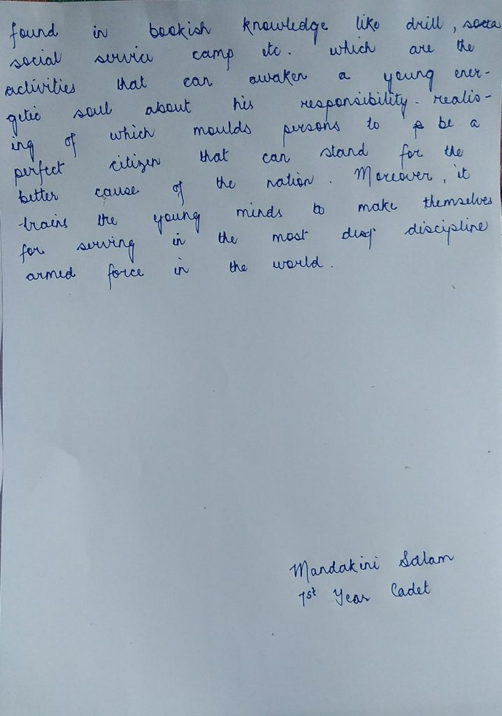 Experience and values imbibed undergoing NCC Training