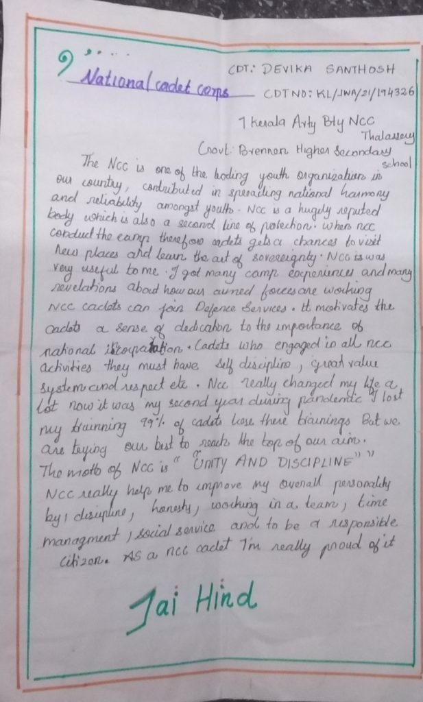CADET:ASWIN P KL/21/SDA/185208 RSM SNDP YOGAM COLLEGE KOYILANDY 30(K) BN, NCC CALICUT GROUP KERALA&LAKSHADWEEP DTE