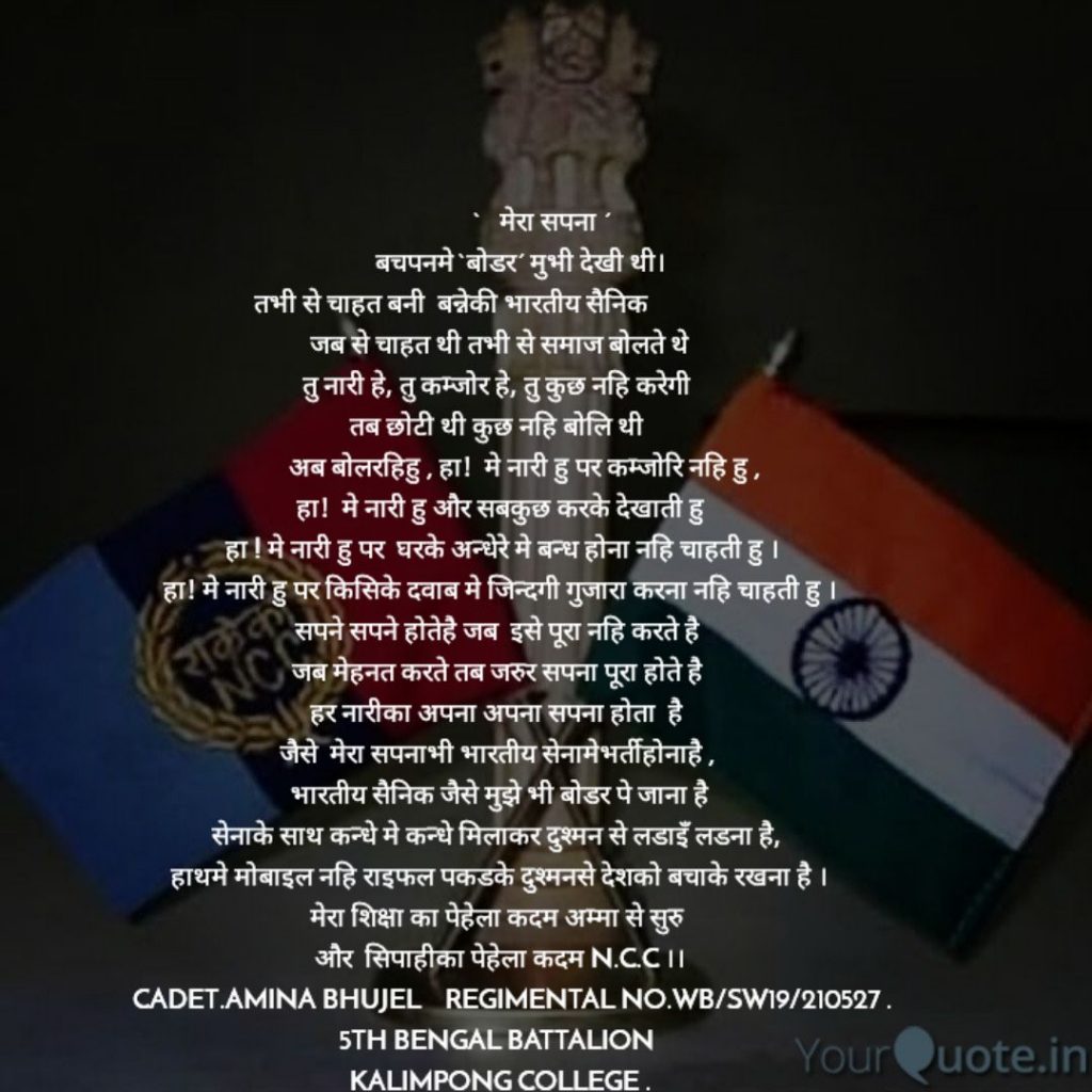 I am Niharika Saikia, NCC 1st year SW Cadet. I basically love to take part in any kind of co curricular activities. And also I am a Volleyball National Level player. While writing,a lot of things were striking but I could write only few.