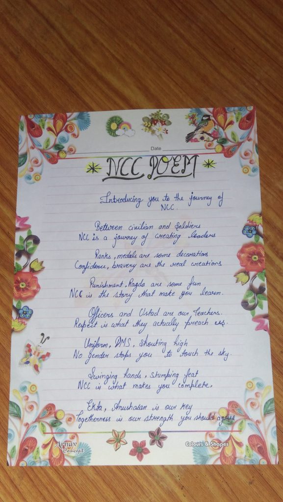 I am Cdt. Ankit Tyagi , my regimental no is: UK/19/SD/A/100523. Currently I am pursuing BCom(Hons) from Graphic Era University ,Dehradun. There is a document attached with this post about my journey in NCC.
