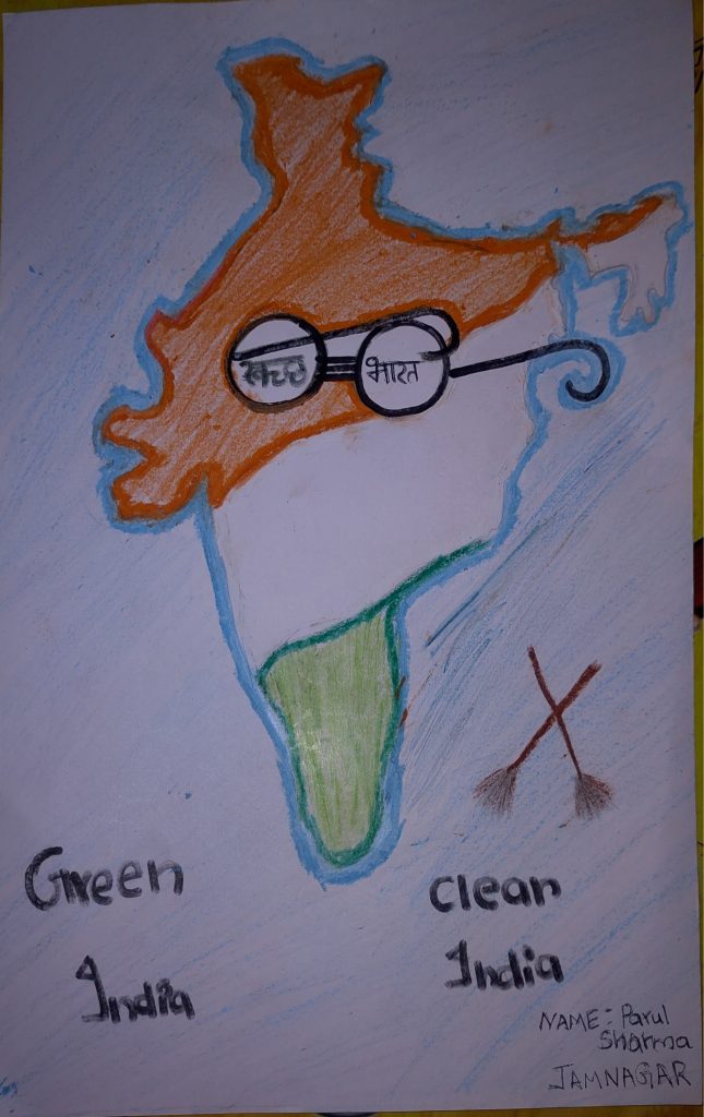 I am Parul Sharma from this painting I would like to say that putting our efforts to make India clean and green is very crucial.