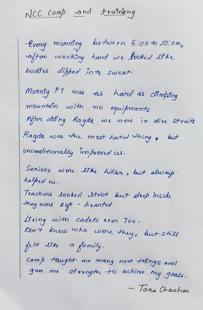 This poem is mainly written on ncc camp by Tanu Chauhan