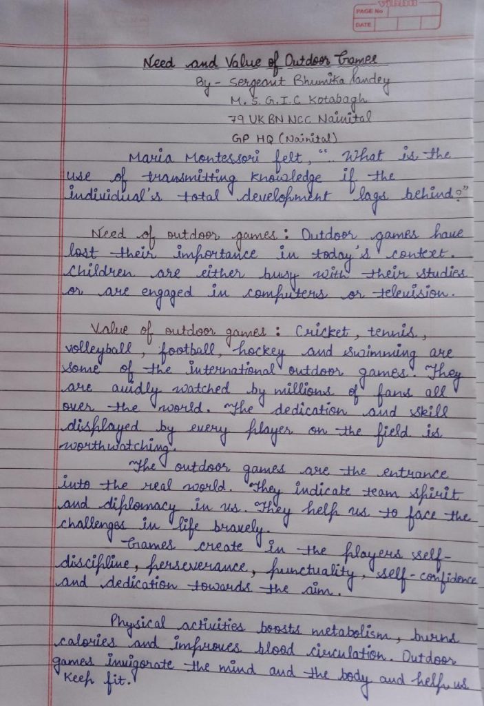 Name-Sergeant BhumikaPandey School-M.S.G.I.C Kotabagh Unit-79 Uk Bn Ncc Nainital