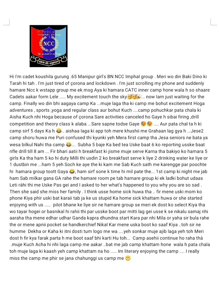 Cadet koushila gurung MN19SWA101568 65 Manipur girl's BN NCC kalugurung791@gmail.com