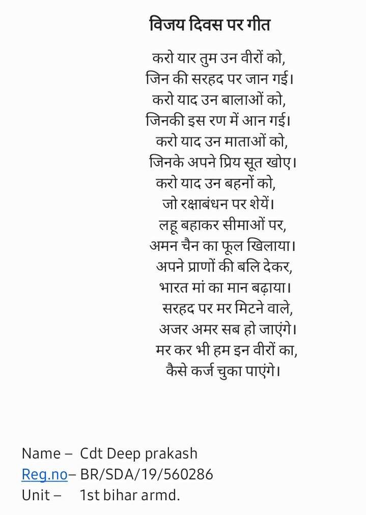 THIS IS CDT.CHAITANYA B HEGDE -3 KAR NAVAL UNIT NCC MYSORE (KAR AND GOA DTE.). I ALWAYS TOOK INTEREST IN EXHIBITING MY TALENTS AND INTERESTS. NCC HAD MADE IT POSSIBLE FOR ME BY PROVIDING ME WITH THIS PLATFORM EVEN DURIN THE PANDEMIC. JAI HIND!