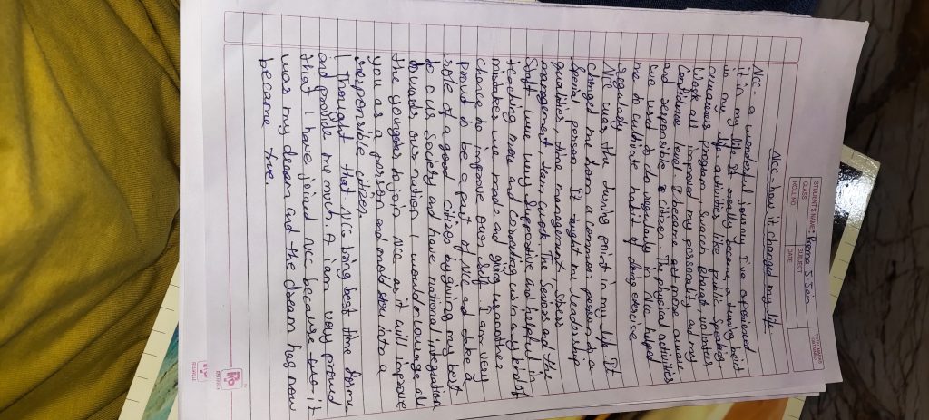 My name is Saraharadhana. G. Ullikashi and I am NCC JW cadet of karnakta Gadag
