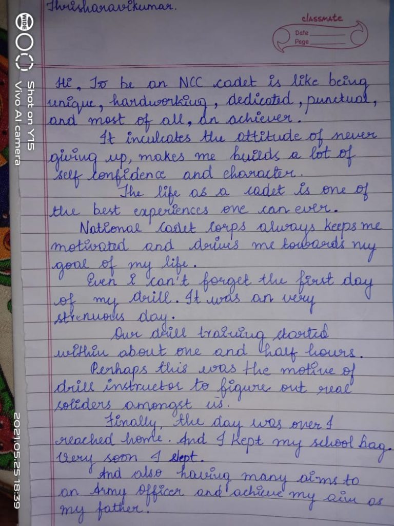 I am cadet thrisharavikumar. I am studying in 9th std holy angels high school