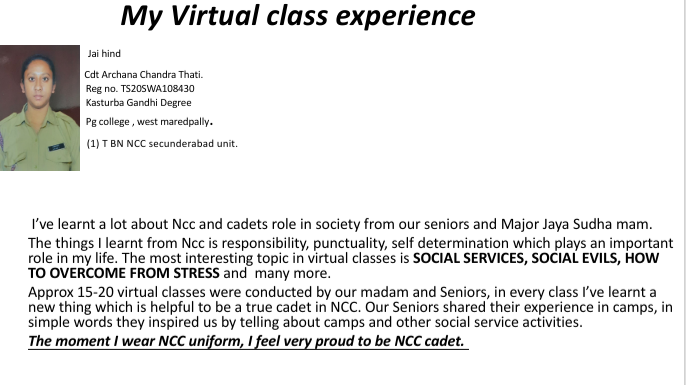 Cadet kasani Sai Priya have described my experience with ncc online classes.