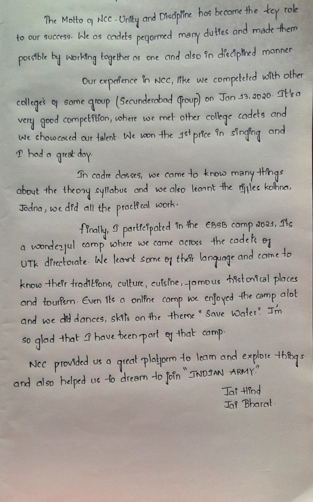 I am KL/20/SW/A/122420 Devi Reghunadh from NSS College Pandalam, under 10 Kerala Bettalion NCC Chengannur,Kollam group, Kerala and Lakshadweep directorate.