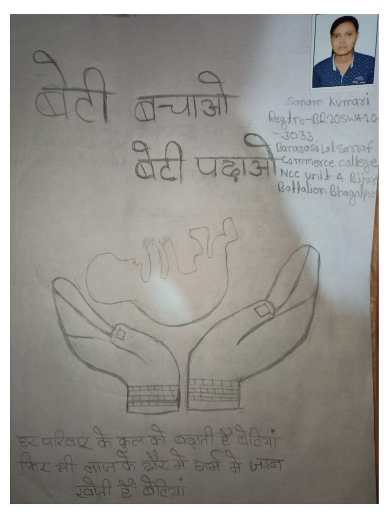 Main Sanam Kumari cadet number 103033 banarsi lal saraf commerce college naugachia 4 Bihar battalion Bhagalpur beti bachao beti padhao per jagruk kar rahi hun