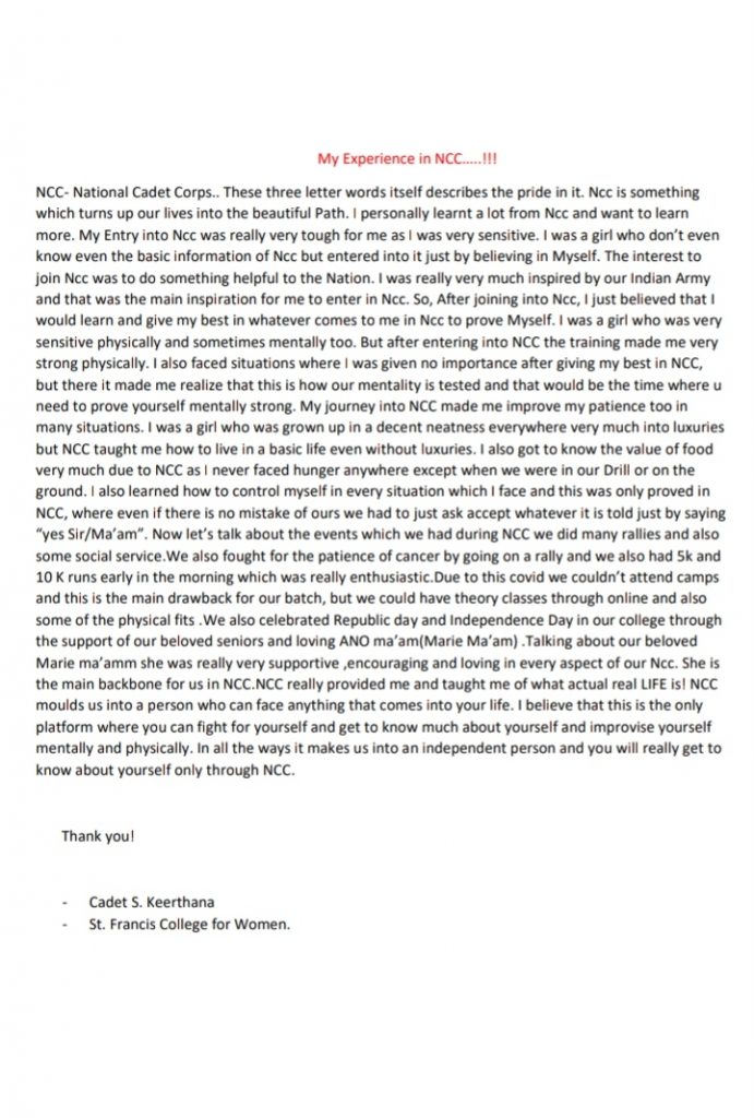 Author-S. Keerthana. I am a student at St. Francis college for women. Ncc cadet of secunderabad group, Ap and Telangana directorate, Ncc. Jai Hind!