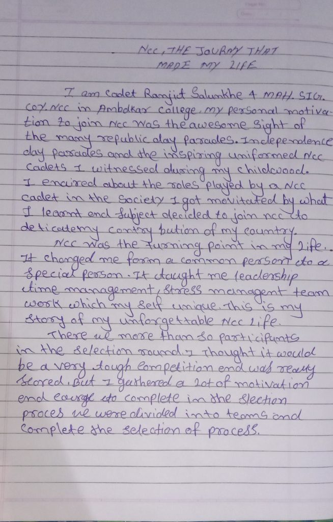 JOURNEY THAT MADE MY LIFE C.D.T SALUNKHE RANJIT 4 MAH.SLG COY.NCC IN AMBEDKAR COLLEGE. MY PERSONAL MOTIVATION EXPLAIN IN PHOTOS ?