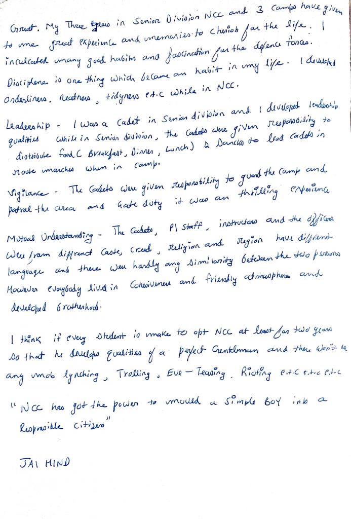 Ariticle on the journey of a cadet in Ncc from when he started his first day in training