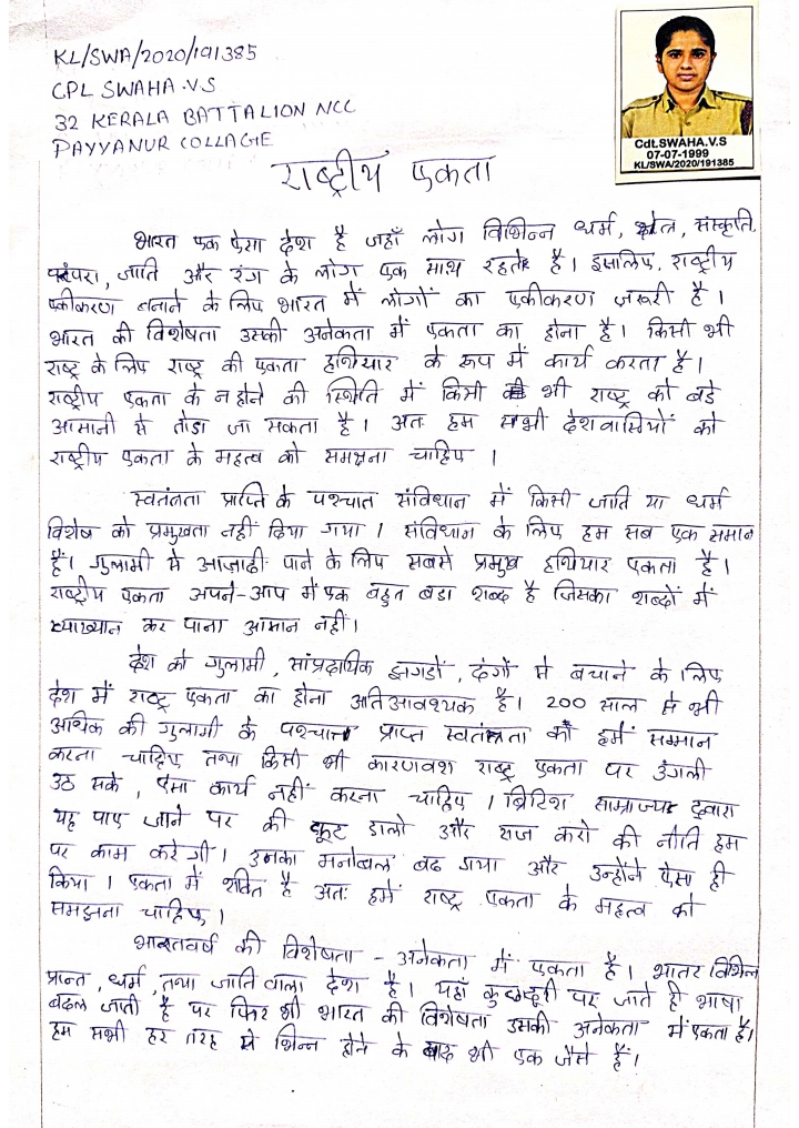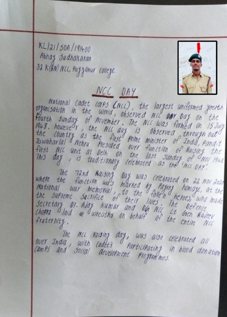 KL/SWA/2020/191378 CADET DIDINA. T. C. V 32 KERALA BATTALION NCC PAYYANUR COLLEGE