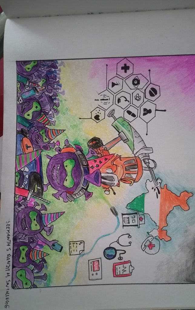 Covid 19 poster drawn by seemanth s ranjith first year bsc student of snc cherthala