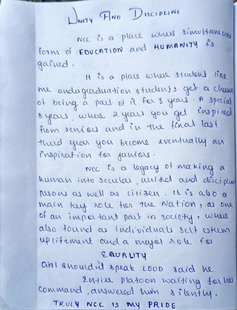 Name- Abhinanda Bharti Category-SW Ncc no- UP20SWA692483