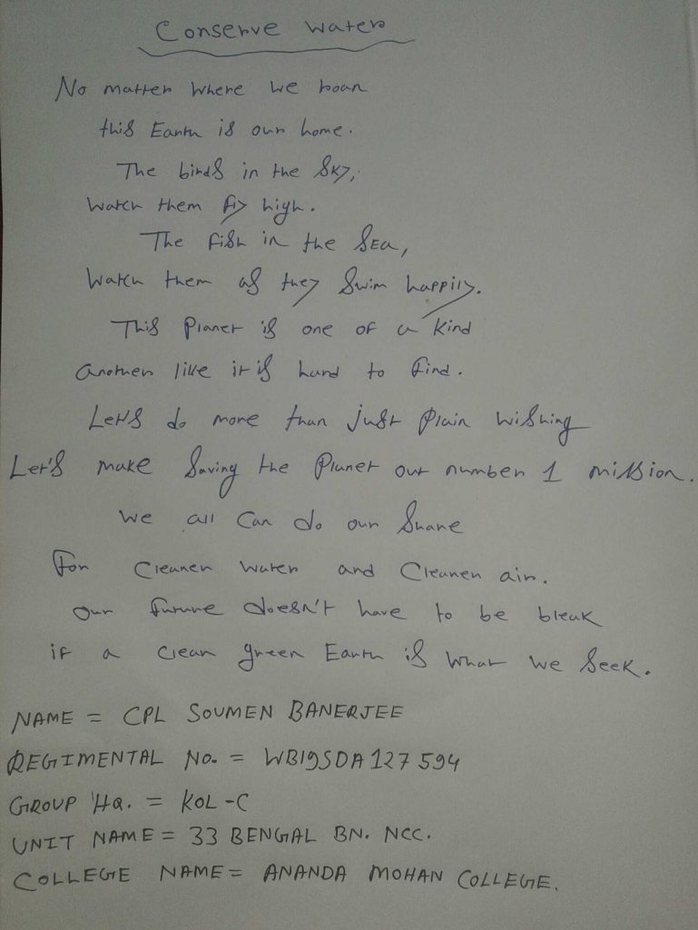 NAME = CPL SOUMEN BANERJEE REGIMENTAL NUMBER =WB19SDA127594 GROUP HQ.= KOL-C UNIT NAME = 33 BENGAL BN NCC COLLEGE NAME = ANANDA MOHAN COLLEGE