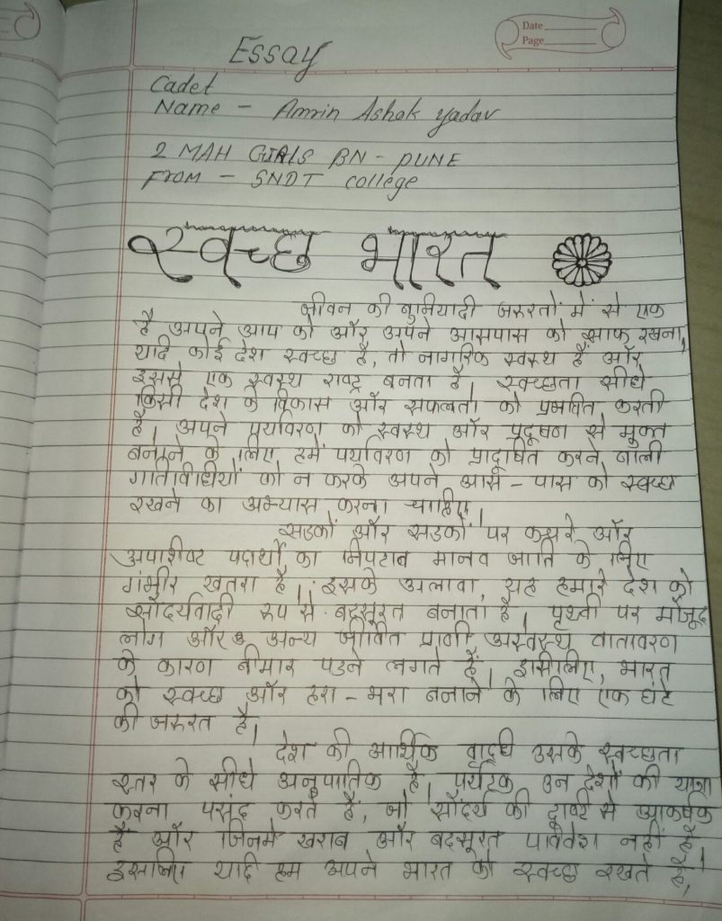 Cdt Name:- Amrin Ashok Yadav 2 MAH GIRLS BN PUNE FROM SNDT WOMEN UNIVERSITY