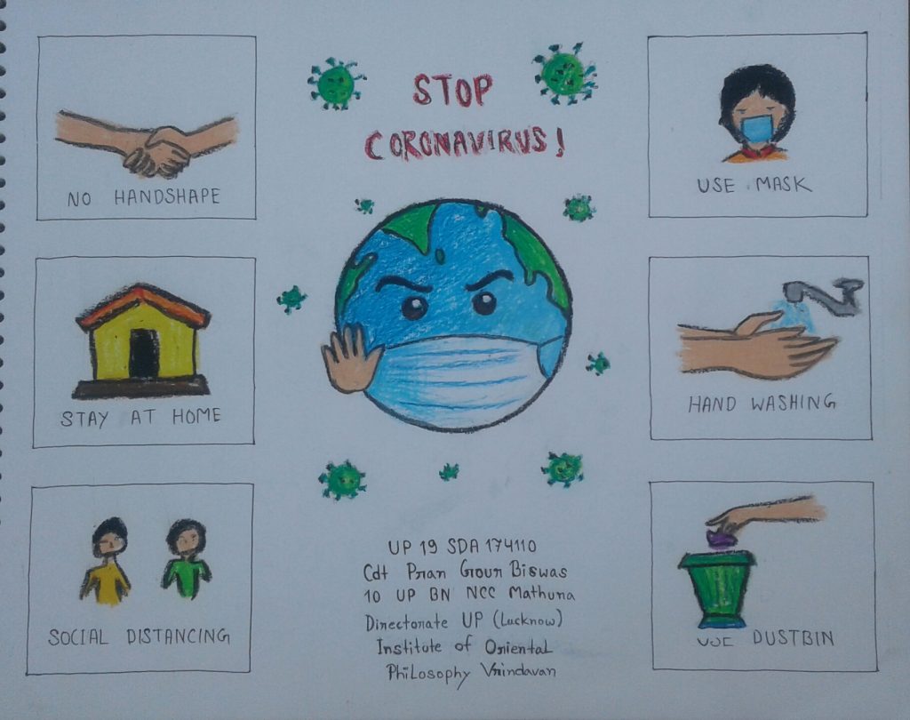 Come together let us stop this corona virus epidemic spreading in the society .. Cdt Pran Gour Biswas 10 UPBN NCC Mathura Directed UP Institute of Oriental Philosophy Vrindavan