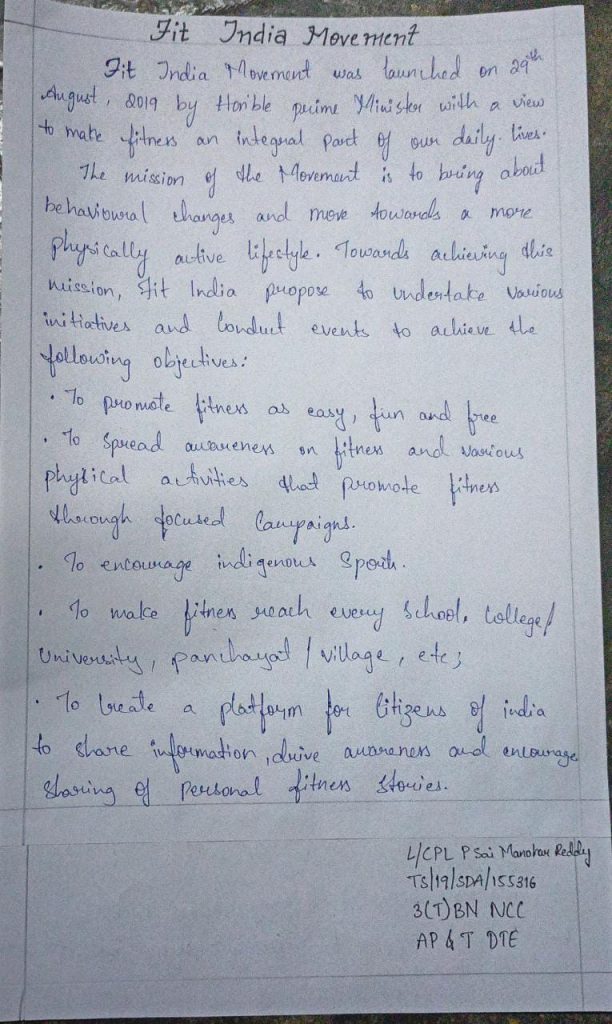 L/CPL P SAI MANOHAR REDDY TS19SDA155316 3(T) BN NCC AP &T DTE