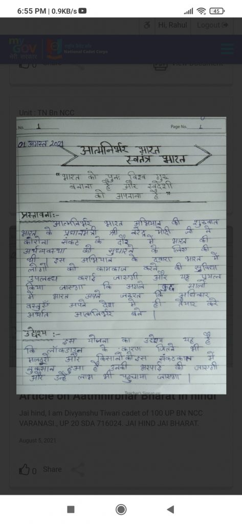 Rank name- CDT Aparna kora Regimental number-WB20SWA193305 College name-Raniganj girls college 5Bengal girls and battalions Burdhawan group West Bengal and sikkim Directorate