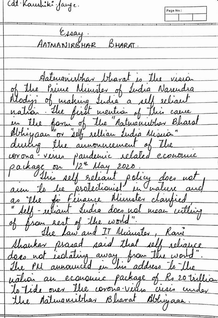 A article on aatma nirbhar Bharat by Cdt Kaushiki Jange
