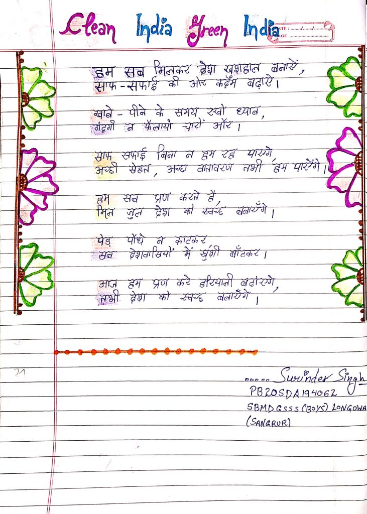 Poem written by cadet Surinder Singh SBMDGSSS BOYS LONGOWAL