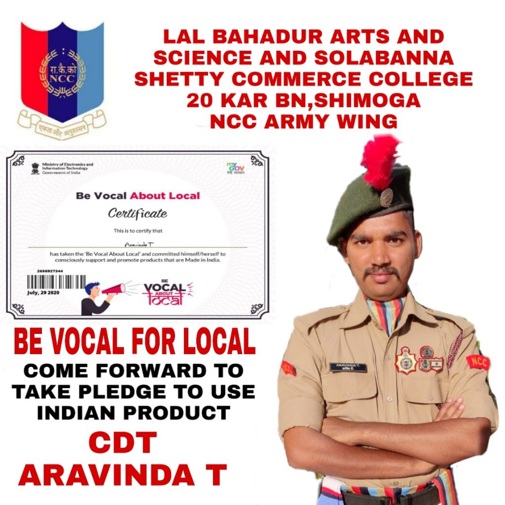 CDT Aravinda T KA/18/SD/A/419645 20 Kar Bn Manglore HQ Shimoga unit