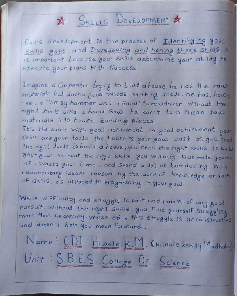 ARTICLE ON SKILL DEVELOPM. HIWALE.K.M. (HIWALE KSHITIJ MADHUKAR) SBES COLLEGE OF SCIENCE 50 MH BN